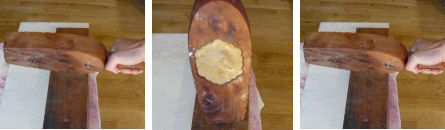 Whether or not you make your own or buy moon cakes at the store, appreciate the process it takes to produce these ancient treats. The most thrilling and scary part of making the cakes is whacking them in the wooden molds. It's a precise order and there's no pussy footing. The whacking is done with gentle confidence, lest the cake pop out of the mold entirely. Catching the cake at the end is always satisfying. (In 2009, I posted a YouTube video on making moon cakes.)
