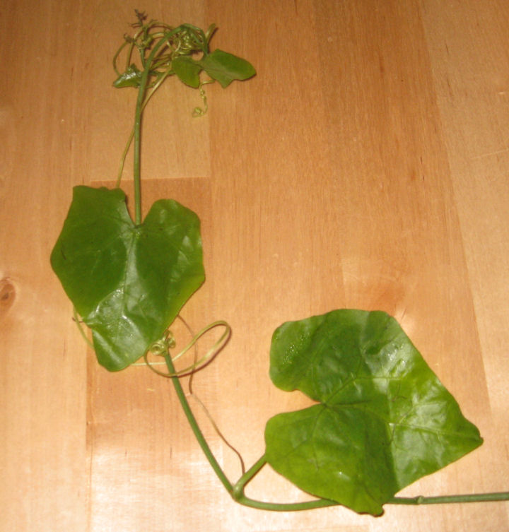 11/28/07 Update: Turns out I was wrong. "Bass leaves" aren't morning glory vines. Read the comment thread to find out what they really are!