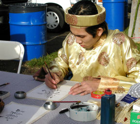 and post it on your front door. No need to do something fancy like the young man in the photo, who was at a San Jose Tet festival. Just download this Word file of a Tet couplet