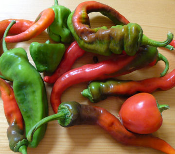Late summer early autumn is when chiles are at their fruity-spicy best. I make it a point to see what's available at the local farmer's markets. Chiles are a hot (pun intended) thing to grow these days and farmers such as Melody Ranch, a local farm in Watsonville near where I live, tries out new varieties every year. The farmer told me that she leaves one row to turn nice and red, and I'm waiting for her jalapenos so I can make a few batches of homemade chile garlic sauce.