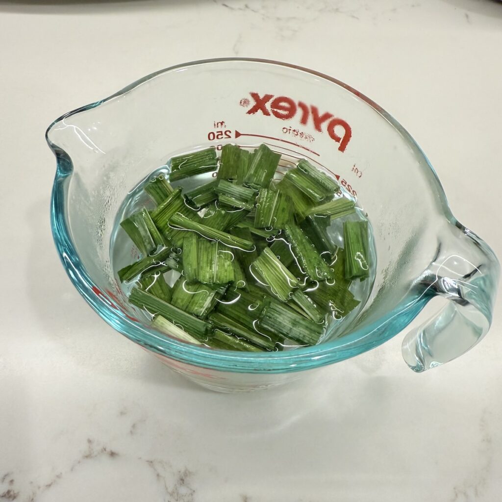 Snip 4 to 6 large fresh leaves (or 8 to 12 thawed leaves) into 1-inch pieces and blend with ½ cup water. Strain through a fine mesh strainer, pressing firmly. Use soon or it may oxidize and lose its peak qualities.