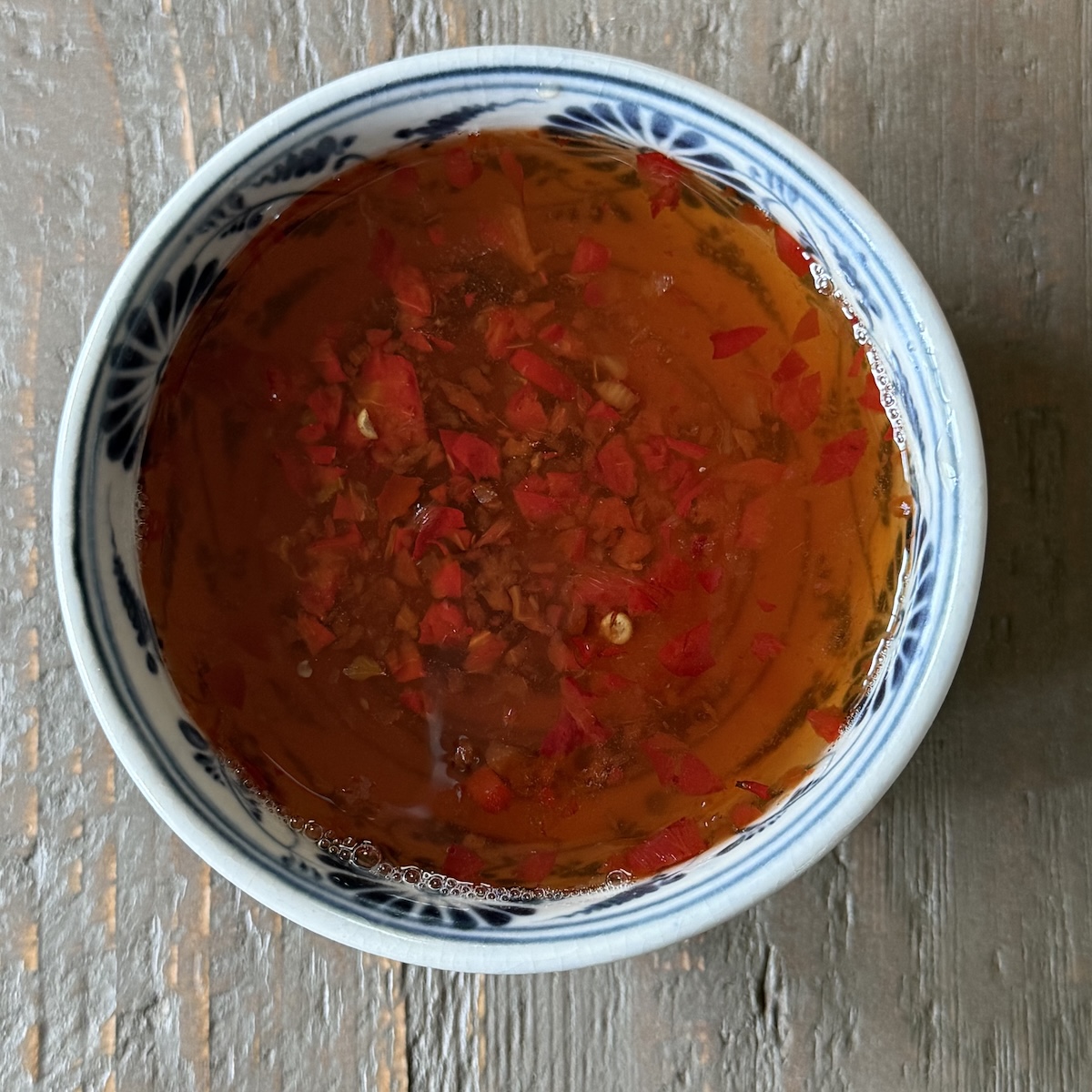Good observation, Andrea. Usually there isn't as much fish sauce added in the nuoc cham, which makes it more like a hot (spicy) and sour sauce with a kick of fishy taste.