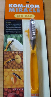 The name sounds ridiculous but the kom kom miracle tool is kinda of fun to use. The Thai company, called Kiwi Kom Kom produces really affordable and sharp knifes and cutting tools. (If you've been visiting this blog for a while, you know that I have a thing for good cheap knives.)