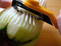 I couldn't pass it up, especially because there weren't too many in stock and the ones on display had no dust on the packaging whatsoever, a sign that there's quick turnover and the tool is in high demand. Asian markets and restaurant supply shops sell many kinds of shredders made with plastic, wood, and bamboo. I've not been too impressed with the cheese grater type of planer as it tends to clog up. The fact that the kom kom is designed like a regular peeler was appealing.