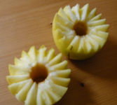 Then I cored an apple, and found the kom kom to be a little unsure. It's made of plastic and most western corers are made of metal. Finally, I swung the pointy tip thing around and poked at the apple to halve it with a zig zag edge. I'm not into Asian fruit carving (I'd rather eat them) so perfect coring and pretty edges don't appeal.