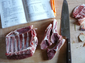 The grilled goat and curry recipes in a number of the Vietnamese cookbooks caught my eye. At the end of the night, I bought some of the meat that we'd butchered, a rack and some boneless leg meat to make goaty Viet dishes at home.