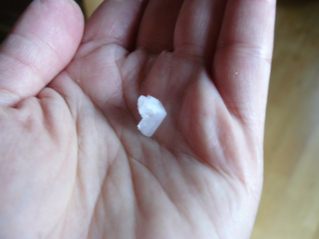 Here's a close-up of one of the larger chunks of the Vietnamese Pearl salt. It's big for salt, about ⅓ of an inch in diameter.