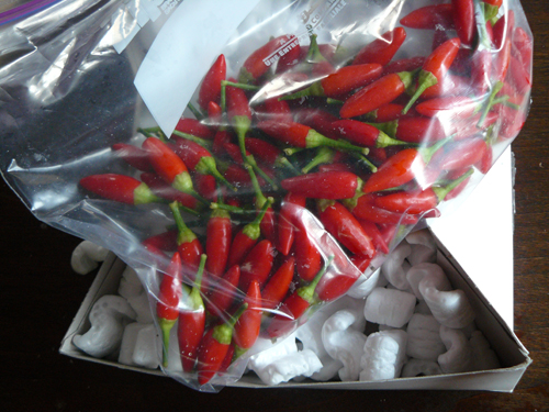 I immediately used four of the chiles in a stir-fry of eggplant and felt the heat long afterwards. Annette, you grow mighty potent peppers! I've frozen them for the time being but when I get back home (I'm traveling to Australia to talk at the Sydney International Food Festival), I'll be using the chiles for batches of killer homemade chile garlic sauce and Thai-style Sriracha sauce.