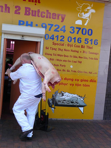 One of my go-to Vietnamese preparations of pork is to marinate pork steaks (photo below) with lemongrass and grill them. Sliced up, the steaks are great bun rice noodles, tucked into a banh mi sandwich, and punches up a bowl of fluffy rice.