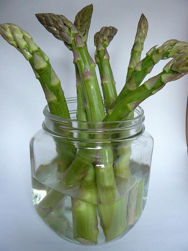 Have you had trouble with asparagus going bad/old when not kept like flowers? It's a great idea. I do have good luck with just keeping it loosely wrapped in a plastic bag in a vegetable drawer for two weeks or more. Maybe it's fresher when I get it though than at a market or store.