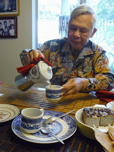 Love the colorful shirt your dad has on! Very groovy. Where did he get the espresso maker with the ceramic top? I've only seen ones that are all metal.