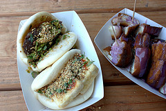 Last week I was in New York en route to Asia. A couple of Manhattan friends, novelist Monique Truong and restaurateur/chef Pichet Ong, suggested that I check out BaoHaus, a new Lower East Side snack joint serving up Taiwanese stuffed buns called gua bao. BaoHaus's buns are not round, filled buns like the ones you get dim sum or the ones I made using refrigerated biscuit dough. Rather, they are mini sandwiches called gua bao.