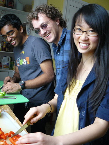 After a while, Paulina's friends trickled in and we began to cook. This was basic kitchen. (Remember your college days?) There was a lack of equipment-sharp knives and cutting boards, things that we take for granted. Certain requested ingredients were not readily available in New Haven.