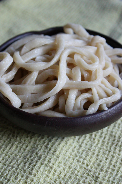 Give this udon noodle recipe a try yourself. You don't have much to lose but some flour and time. This udon noodle recipe produces about 2 ¼ pounds of cooked noodles, which is ample for 8 portions.