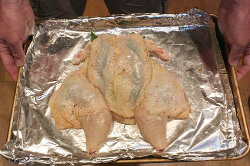 My solution to avoid turning the bird is butterflying, which is basically removing the backbone and flattening the bird out. The result looks like an open book.