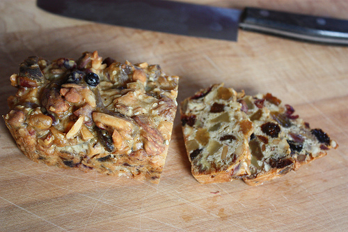 I love to bake holiday sweets but this year, I unfortunately have little time to do it. I used to stay up late baking up to a dozen different kinds of cookies to gift friends and family. Given my current schedule and obligations, late-night baking sessions were not possible for 2010. I decided to revisit an old friend, the fruitcake, and scale it down.