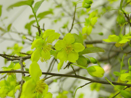 Steven: The flowers at the top are actually yellow but there's a slight greenish cast to them from the photo. They're called hoa mai in Vietnamese and somewhat hard to obtain in the U.S.