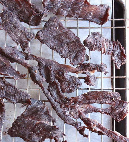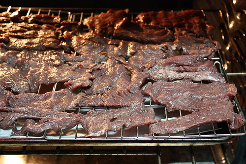 Let the meat dry out for 3 to 4 hours, turning it midway, if you like. The meat is done when it feels dry to the touch but still somewhat soft. The pieces will be about 50% of their original sizes. Once done, remove from the oven and set aside to completely cool. Transfer to a zip-top bag and refrigerate or freeze.
