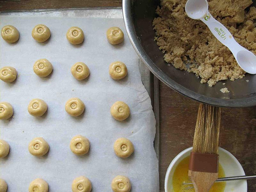 6. Brush the tops with lightly with beaten egg, then bake for 20-22 minutes until light golden in color. Transfer to racks and let cool completely before eating or storing in an airtight container. These cookies are very delicate and can smudge easily. Be gentle with them.