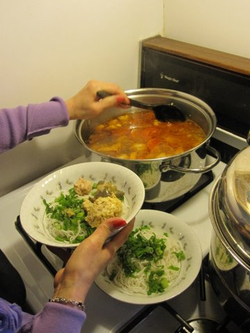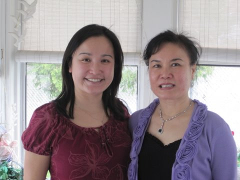I hope you had a wonderful holiday weekend. Here are my pics from Easter lunch with mom. [Above is Mrs. Pham and Eliza, Chaffee's sister.] She made the Banh Khuc (which we all loved, especially the pretty green color) and Bun Rieu.