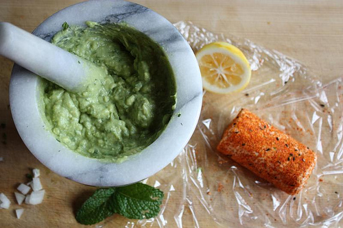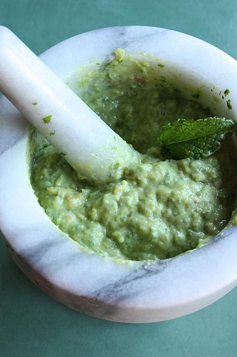 This is basically guacamole but with ginger, garlic, green chile, cumin, and mint.