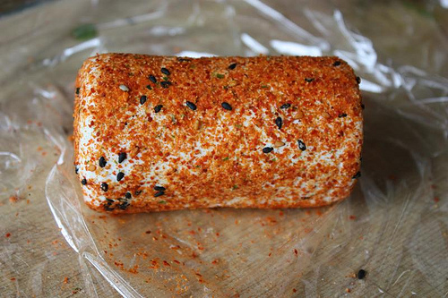 Oh goodie! I went nuts and bought a bunch of different types of togarashi while developing rice cracker recipes and now the little jars are taking up too much room in the cupboard. Time for a log of goat cheese to blot it all up. Thanks A!