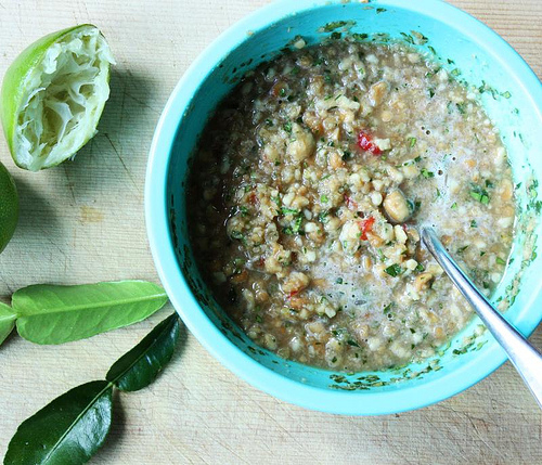 1 tablespoon finely chopped kaffir lime leaf (remove the midrib)