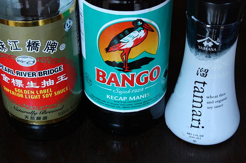- Soy sauce (including tamari and kecap manis Indonesian sweet soy sauce)