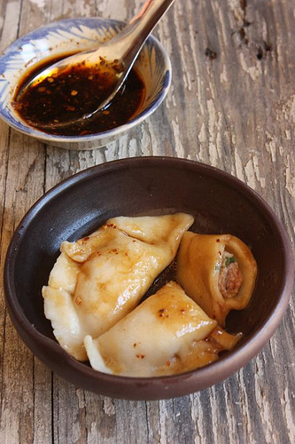 However, don't overlook poaching the dumplings just because it sounds boring! The wrappers develop their chewiness and tenderness well in the pot of water. The photo at the top is of the poached dumplings tumbled in dipping sauce. We actually enjoyed them as much if not more than the pan-fried pot stickers! Seriously.