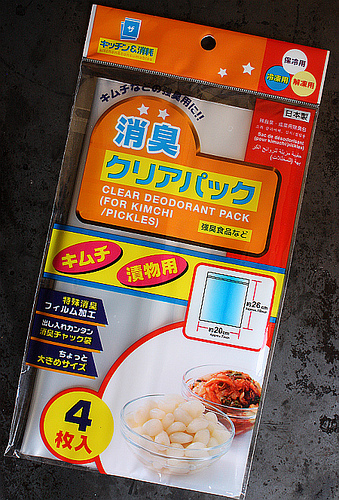 I was laughing at the title of your post. Having lived in Japan, I was fairly sure that the special bag for kimchi would have worked. I've been concerned about this problem for many years!