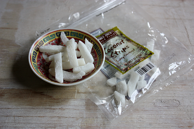 My husband and I have nearly eaten up the bag. The white batons are not the traditional shape but so what? It'll do in lieu of the thin strips of candied coconut, which I absolutely love and enjoy making my own, cracking the coconut included!