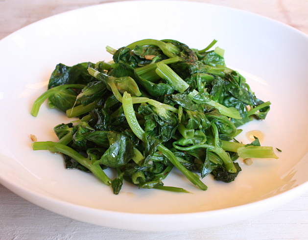 Mandarin. Pea tips look like pea vines but they only grown a foot or two; they