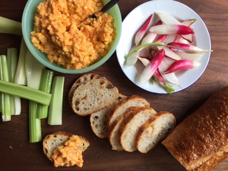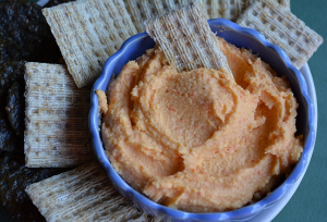 The result was a cheery spread that I've now made twice since we came home last week from vacation. I guess we kind of like it. Try it pimento cheese with Triscuits or pretzels.