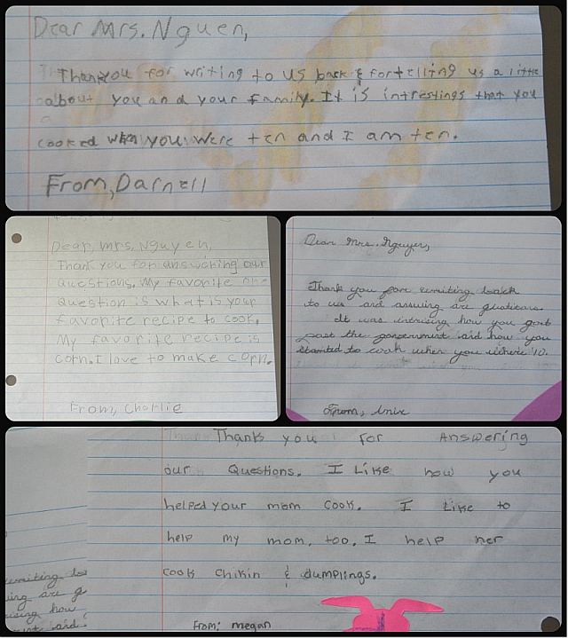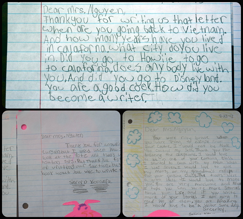 It was really cool that you put our writing on the blog. I would like to try the chicken and bamboo noodle soup recipe (buh mang ga). It really looks delicious.