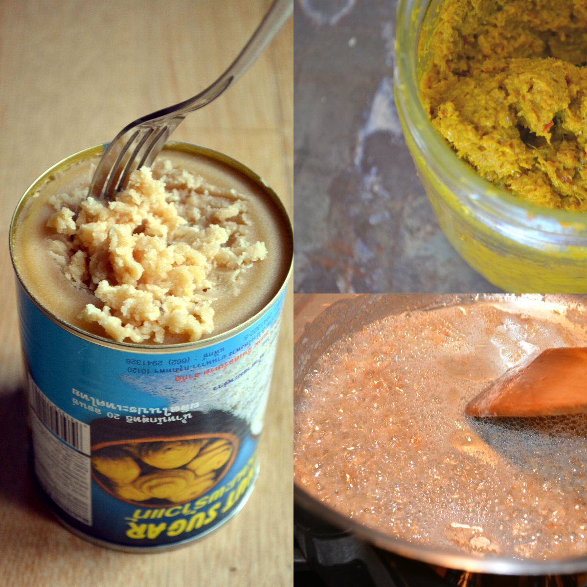 Note that I used a canned coconut palm sugar that I had to scrape with a fork; it was okay stuff but very compact so use a little less than what's called for or the curry may be on the sweet side.