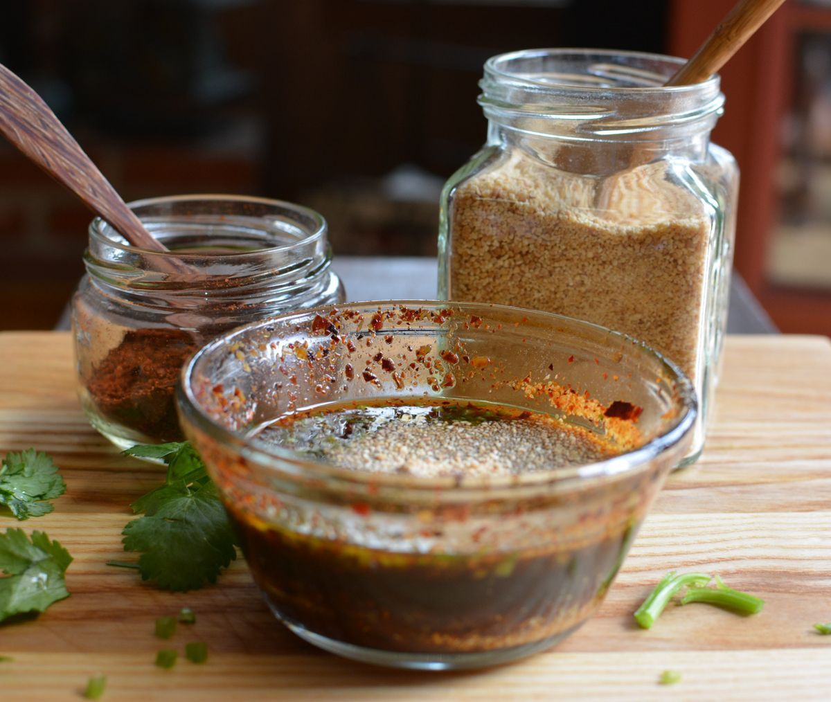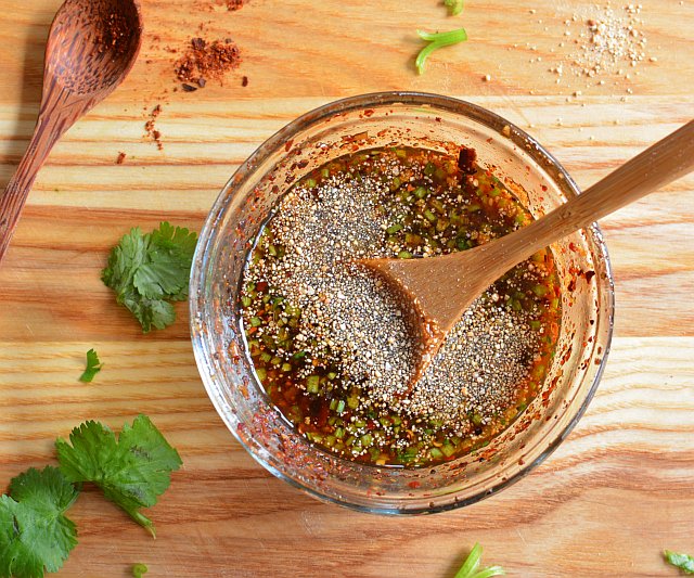 - Stir to combine, then set aside for 1 hour to bloom. Or cover and refrigerate for up to 2 days, returning to room temperature before finishing. To finish, add the sticky rice powder and cilantro. Stir then serve with the grilled meat of your choice!