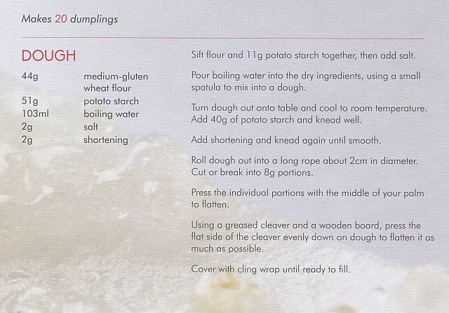 Christopher Tan, a food expert in Singapore, gifted me the book when I visited him in December; we have an ongoing cookbook exchange. Chris and I both noted how the authors, Janice Wong and Ma Jian Jun, opted not to use wheat starch for har-gow dough and the like.
