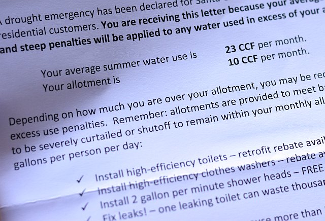 The City of Santa Cruz where I live relies up on a local water supply. We don't tap into the California water supply system like many other municipalities in the state. Striking a blow for water freedom and independence has its price and this was it.