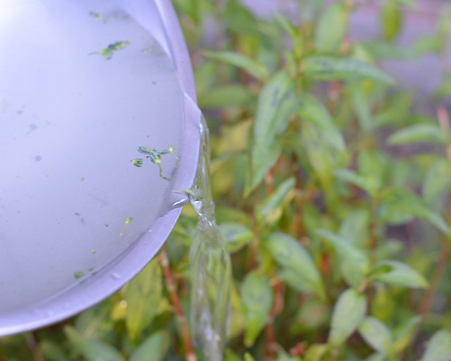 Repurpose water for plants. Instead of pouring the water used for washing vegetables down the drain, I water our plants with it. It's not like that water is greywater that has to get fully recycled to be reused. Most of our produce comes from the local farm so heck, we're helping to complete the circle. Leftover water in a pitcher, flower vase, and Mr. Spring Roll rice paper dipping bowl gets poured into garden beds too.