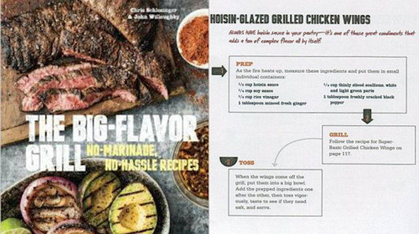 The Big-Flavor Grill is organized as chapters focused on one single protein that cooks can then vary with a bunch of different seasonings, sauces, or garnishes. If you master grilling one thing, you can dress it up many different ways. This may seem like freshman level cooking but I found the approach to be a relief.
