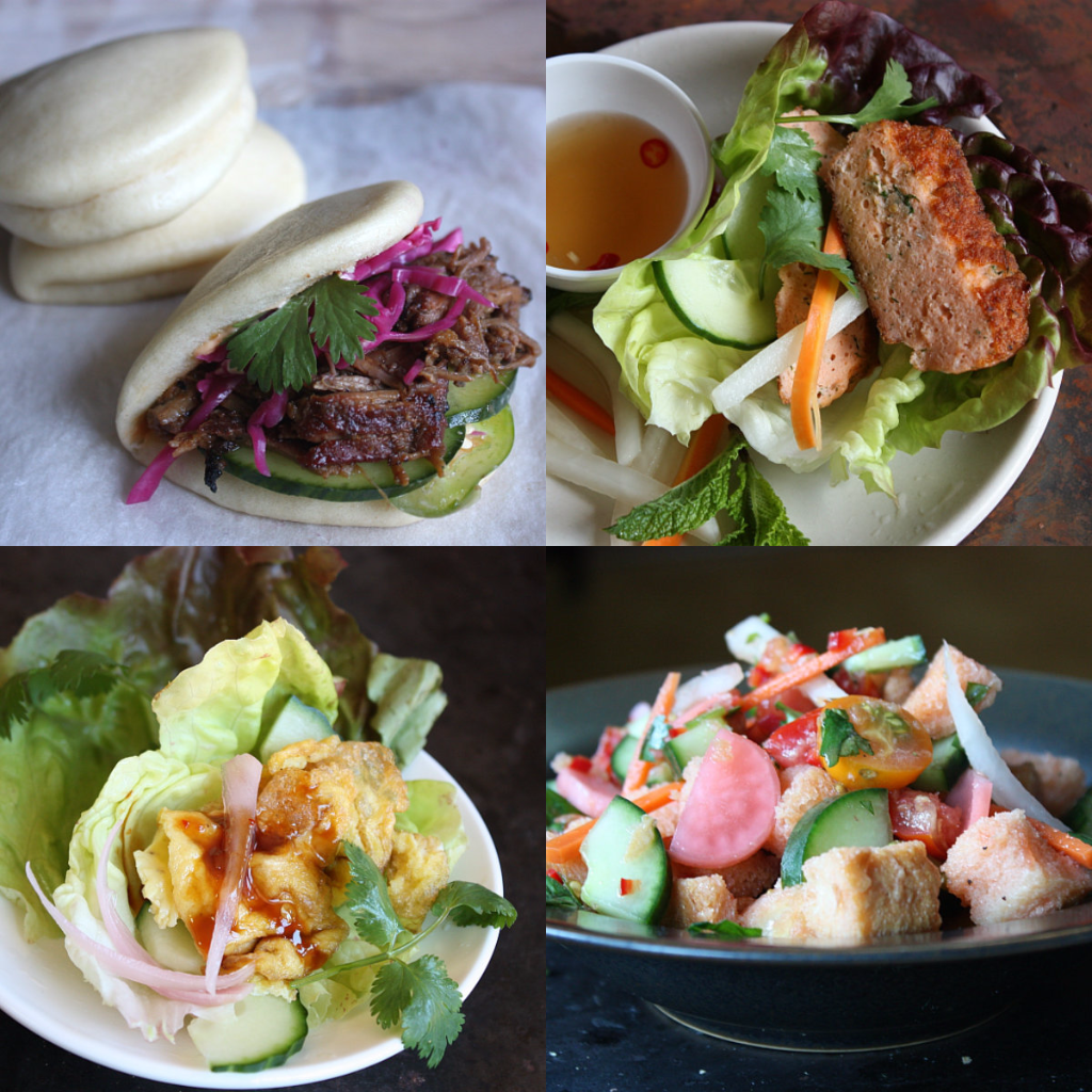 If you don't want to eat carbs or wheat gluten, use gluten-free bread or make banh mi lettuce wraps. In the photo above, you see the salmon herb patties and Thai egg omelet mentioned in the recipe. And with all that bread around the house, why not try a banh mi take on Italian panzanella bread salad.