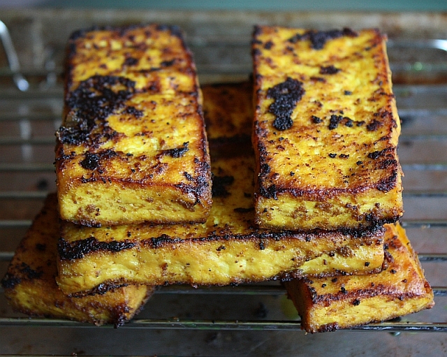 For striking color and flavor try the sardines in tomato sauce on page 76. The herbed salmon cakes on page 79 would be ultra pretty with their orange color. For a vegetarian yellow take, try the coconut curry tofu on page 108. Slice them on the diagonal into thin pieces.