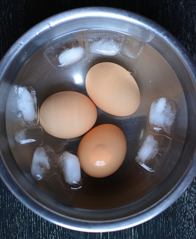 - Meanwhile bring the eggs to room temperature before boiling them. If you need an assist, see these hard-boiled egg tips for guidance. Peel the eggs after they've cooled and set aside.
