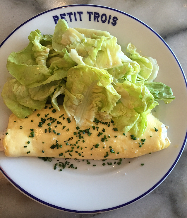 Laughing Cow is my comfort cheese from childhood so I decided to put it into an omelet and then make banh mi from it. The omelet idea came from Petit Trois in Los Angeles, where chef Ludo Lefebvre offers a signature omelet filled with Boursin spreadable cheese. Rory and I lunched there with KCRW radio show host and chef Evan Kleiman. We had front row seats at the bar and watched the crew prepare our food. The omelet was prepared with utmost precision and care. The result was delicate and jiggly, stunningly eggy and filled with just the right amount of oozy cheese. A side salad refreshed the palate.
