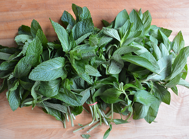 Right now, the herbs at Asian markets are super lush. The leaves are ginormous, which makes me wonder a bit how they got the leaves so big, but I also noticed that warm weather has stoked the mint growing in front of our local hippie health food store. Then I remembered that the size of herb leaves depends on the variety. Whatever that sells at my Chinese-Vietnamese market is huge.