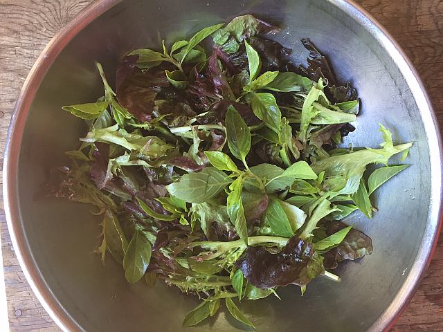 Aside from Viet-style lettuce wraps, I also treat the herbs like a salad ingredient, adding a bunch of the leaves to my salad bowl - just in the way that you'd add arugula to other salad greens. The herbs whether mint, basil, cilantro or other kind of herbs, contribute sparks of flavor and perfume. I dress such salads lightly with a whisper of dressing - a little rice vinegar, sugar, neutral oil and touch of water.