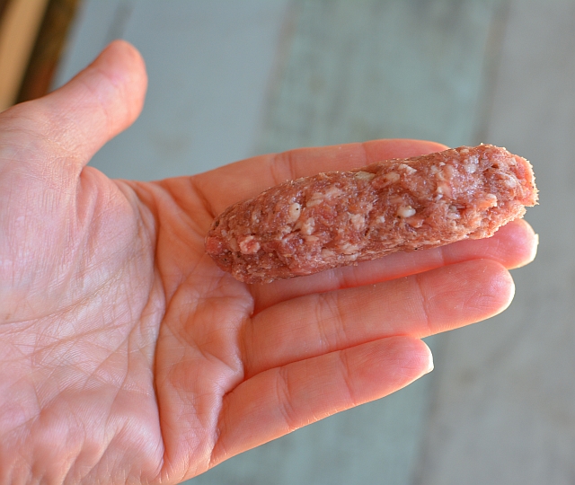 - Form into 24 sausages, each one resembling a fat finger. Set aside, or cover and chill for up to 8 hours (return to room temperature before cooking). Slice the onion and soak in water for 10 minutes to remove some of its harshness; drain and set aside.