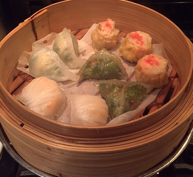 T is for tofu, a mainstay on dim sum menus. Tofu skin (yuba) rolls, whether steamed, pan-fried or deep-fried, are often prepared with pork, shrimp and vegetables. Fried salt and pepper tofu and pressed tofu salads are terrific vegetarian tofu options. Warm tofu pudding (think soy panna cotta) topped with ginger syrup is a favorite sweet treat. Takeout dim sum is perfect for hosting a nosh session at home. Refresh by resteaming or microwaving boiled or steamed dumplings. Slide baked or fried dim sum into a 350F oven; put them on a rack place on a baking sheet to promote heat circulation and even re-crisping.