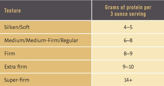 I made and bought a lot of tofu for the book. And in general, the firmer the tofu, the harder the texture, and the more protein it contains by weight. You can guesstimate the texture and density by the amount of protein in a standard 3-ounce serving. Look at the nutrition label.