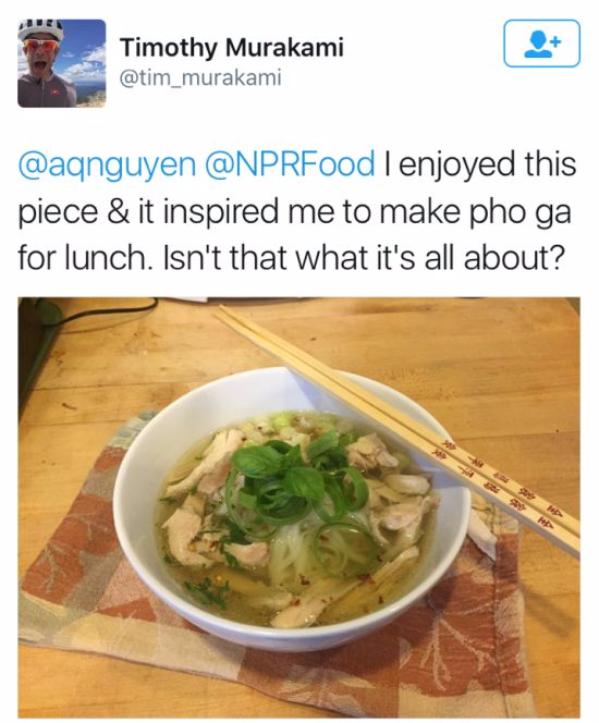 Over the weekend on Saturday, Bon Appétit Editor-in-Chief Adam Rappaport issued a second, better-written apology and retitled the post, "About that Pho Video." After the NPR piece published, the magazine's online editor emailed to let me know that the discussions here and elsewhere have made them think more critically about how they do things.